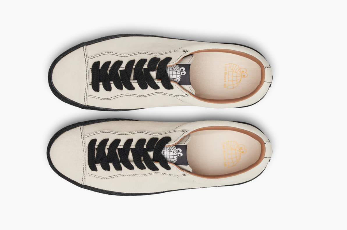 This low top sneaker features a durable upper with a extra toe cap panel. Here suggested in a White suede with black stitches and a black outsole foxing tape.